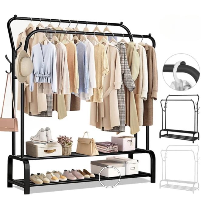 ✅ Podwójny drążek – konstrukcja z dwoma drążkami zapewnia więcej miejsca na wieszanie ubrań, pozwalając lepiej wykorzystać przestrzeń w domu.