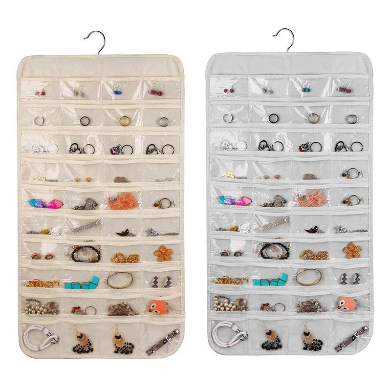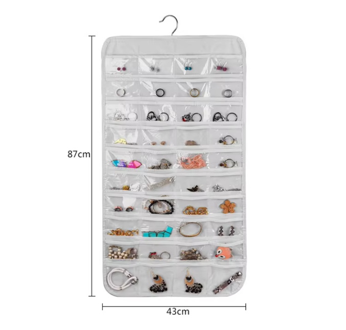 Organizer wiszący na biżuterię – 80 kieszeni, dwustronny