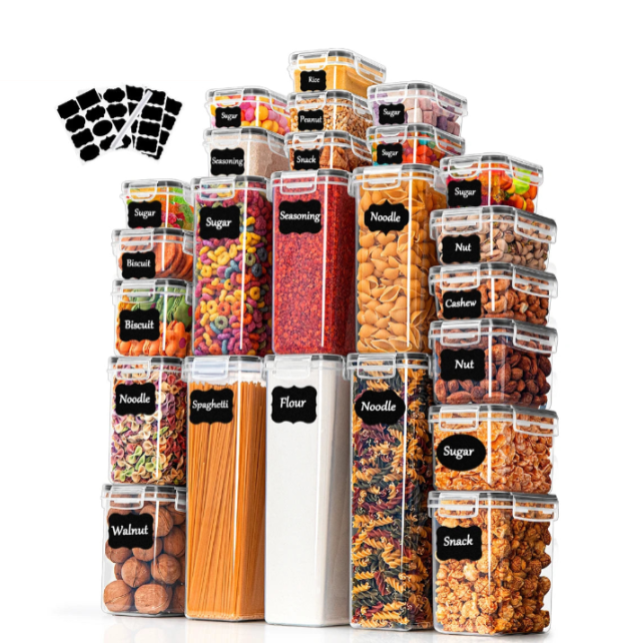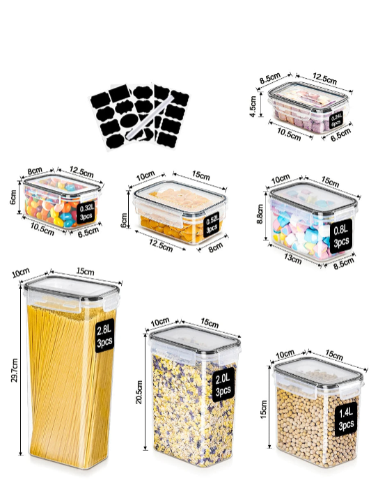 ✅ Kompletny zestaw – w opakowaniu znajdziesz aż 24 pojemniki w 7 różnych rozmiarach, które pozwolą Ci uporządkować kuchnię i spiżarnię: