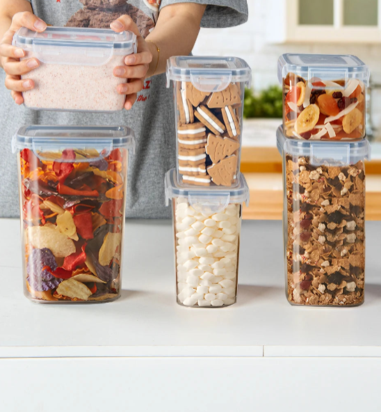 ✅ Hermetyczne zamknięcie – pokrywki z trzema zatrzaskami i silikonową uszczelką chronią zawartość przed wilgocią i powietrzem, utrzymując żywność świeżą i chrupiącą.