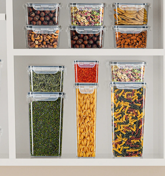 ✅ Oszczędność miejsca – pojemniki są sztaplowane (stackable), co pozwala zoptymalizować przestrzeń w kuchni, lodówce czy spiżarni i utrzymać porządek.