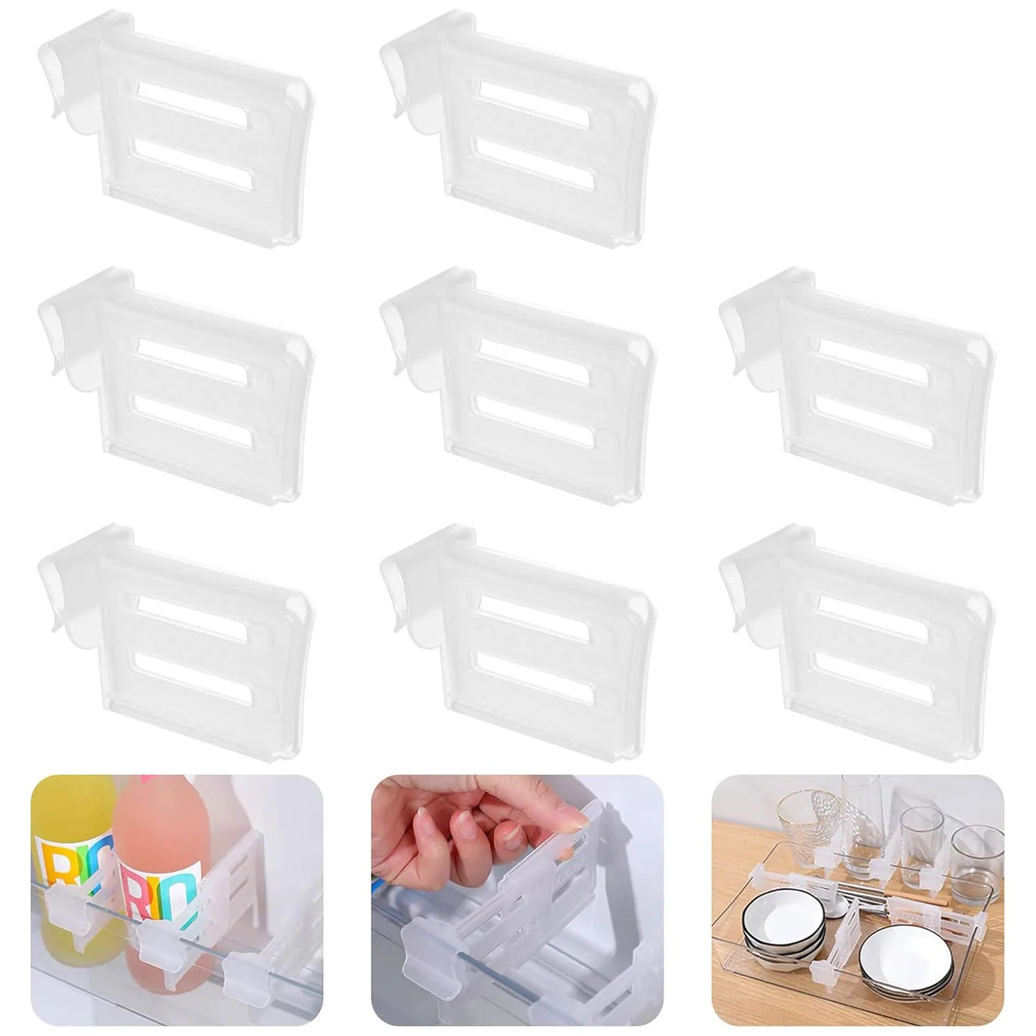 Te praktyczne, przezroczyste klipsy do lodówki pozwalają łatwo podzielić przestrzeń na półkach i drzwiach lodówki. Dzięki regulowanej szerokości dopasujesz je idealnie do swoich potrzeb, zapobiegając przewracaniu się butelek i mieszaniu produktów.