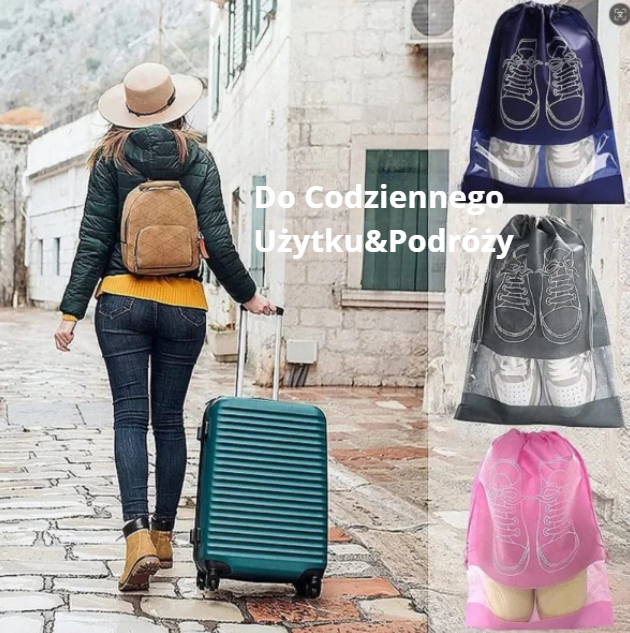🔹 Niezbędnik w domu i w podróży – praktyczne woreczki na buty, które chronią obuwie przed kurzem, zabrudzeniami i otarciami. Idealne do przechowywania w walizce, szafie czy szafce na buty.